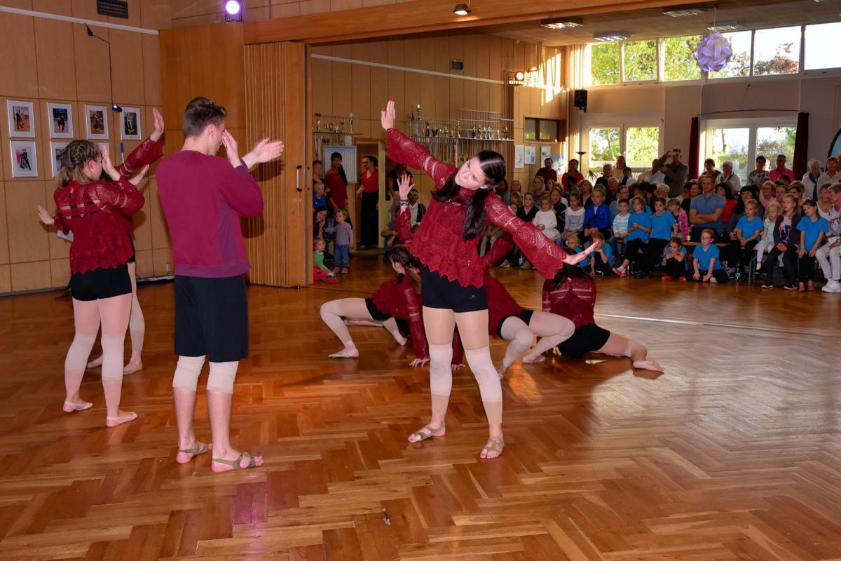 Ein reichhaltiges Repertoire aus den Bereichen Modern Dance mit den Gruppen Minikrümel, Krümel, FireFlys, Trance und Daisys leitete die Veranstaltung in unserem Trainingszentrum ein. Engagiert und mit Herzblut moderierte Olivia Böhme als Verantwortliche ihre Gruppen an und machte vor allem deutlich, wie sehr Teamgeist und Freundschaften eine Gruppe zusammenschweißen kann. Es war schon berührend, wie eine Tänzerin, welche nun leider nicht mehr regelmäßig zum Training kommen kann, unter mancher geflossener Träne respektvoll verabschiedet wurde. Nach diesem emotionalen Moment schlossen nun die Standard- und Lateinpaare im Nachwuchsbereich an. Dabei galt das Motto: „Die Kleinen ganz Groß.“ Zusammen zeigten die Paare ihr Können und begeisterten nicht nur abschließend mit dem gemeinsamen Blocktanz.