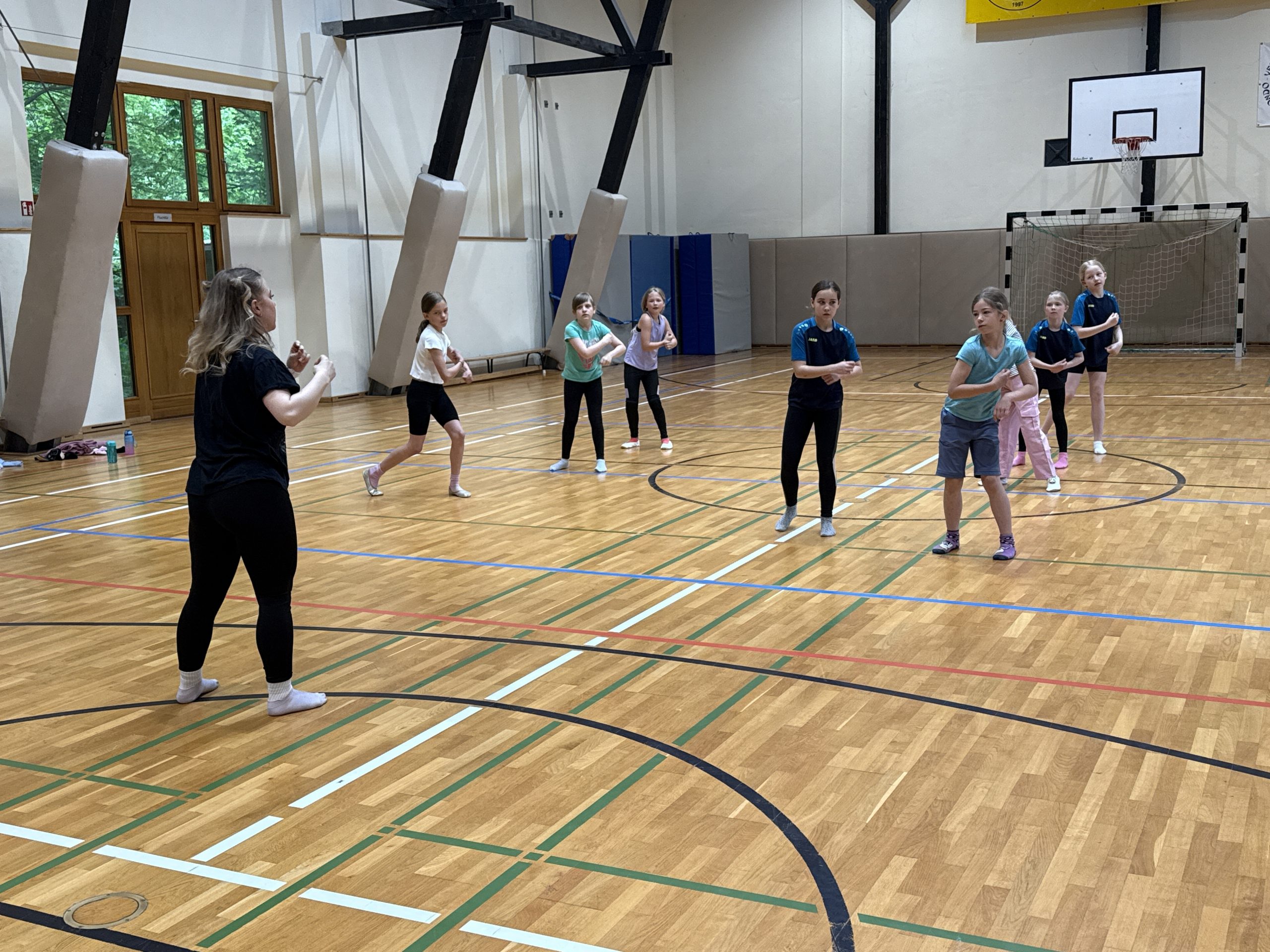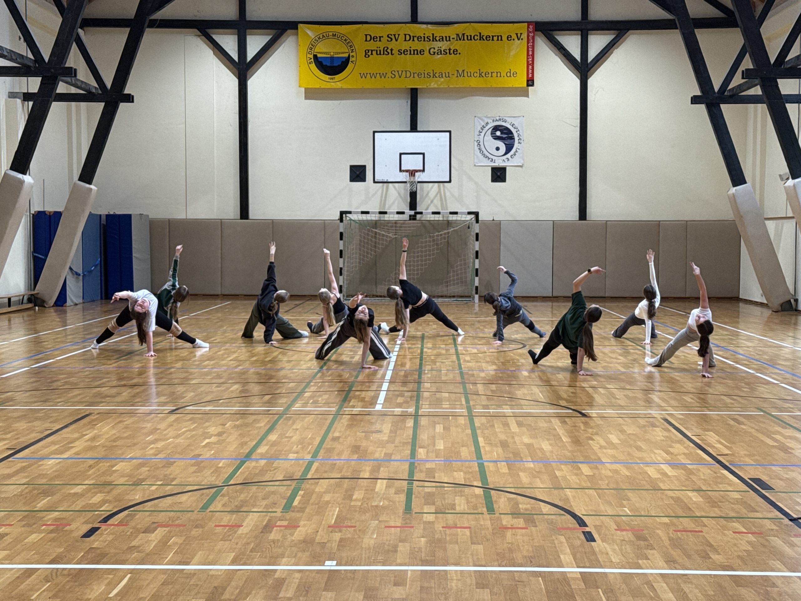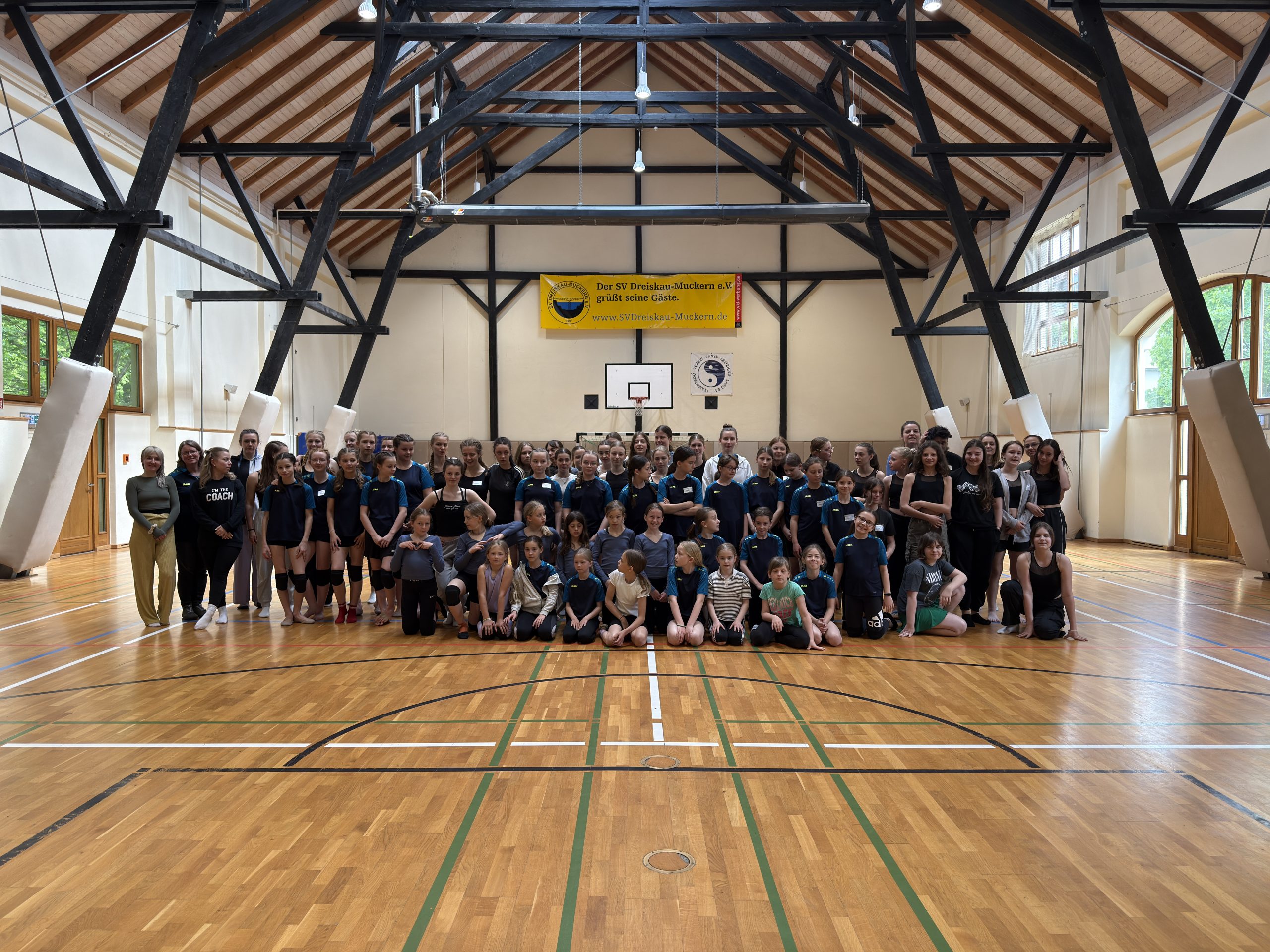 Am Freitag, den 04.05.2025 wurden die insgesamt 61 Kinder und Jugendlichen von ihren Eltern gebracht. Der Samstag war dann klug durchdacht und im 1,5 Stunden Takt verplant, dass Turnhalle, kleiner Saal, der Seminarraum sowie die Küche des Rittergutshofes von 7 Trainern benutzt werden und alle Teilnehmer auch ihre Pausen für Spiele für drinnen und draußen unter Aufsicht von 6 starken Betreuern bekommen konnten. Die jungen Teams, die gerade kein Training hatten, backten am Vormittag für die gesamte Mannschaft und probierten dabei viele neue Rezepte aus, wie zum Beispiel Zebrakuchen. Wenn am Nachmittag diese Tanzgruppen trainierten und ihre neuen Tänze für den Schautanztag einstudierten, widmeten sich die anderen Mädchen den Plakaten, die ganz wunderbar gelungen in den Schaukästen im Eingangsbereich des Vereinshauses ausgestellt wurden. Währenddessen wurde von den Obst- und Gemüsetellern genauso gerne genascht wie vom Kuchen. Am Sonntag, nach den letzten Trainingseinheiten, wurden erst die jüngeren Kinder wieder abgeholt. Die Tanzgruppen Daisys und Trance führten noch eine Generalprobe durch. Dann ging es auch für sie nach Hause.